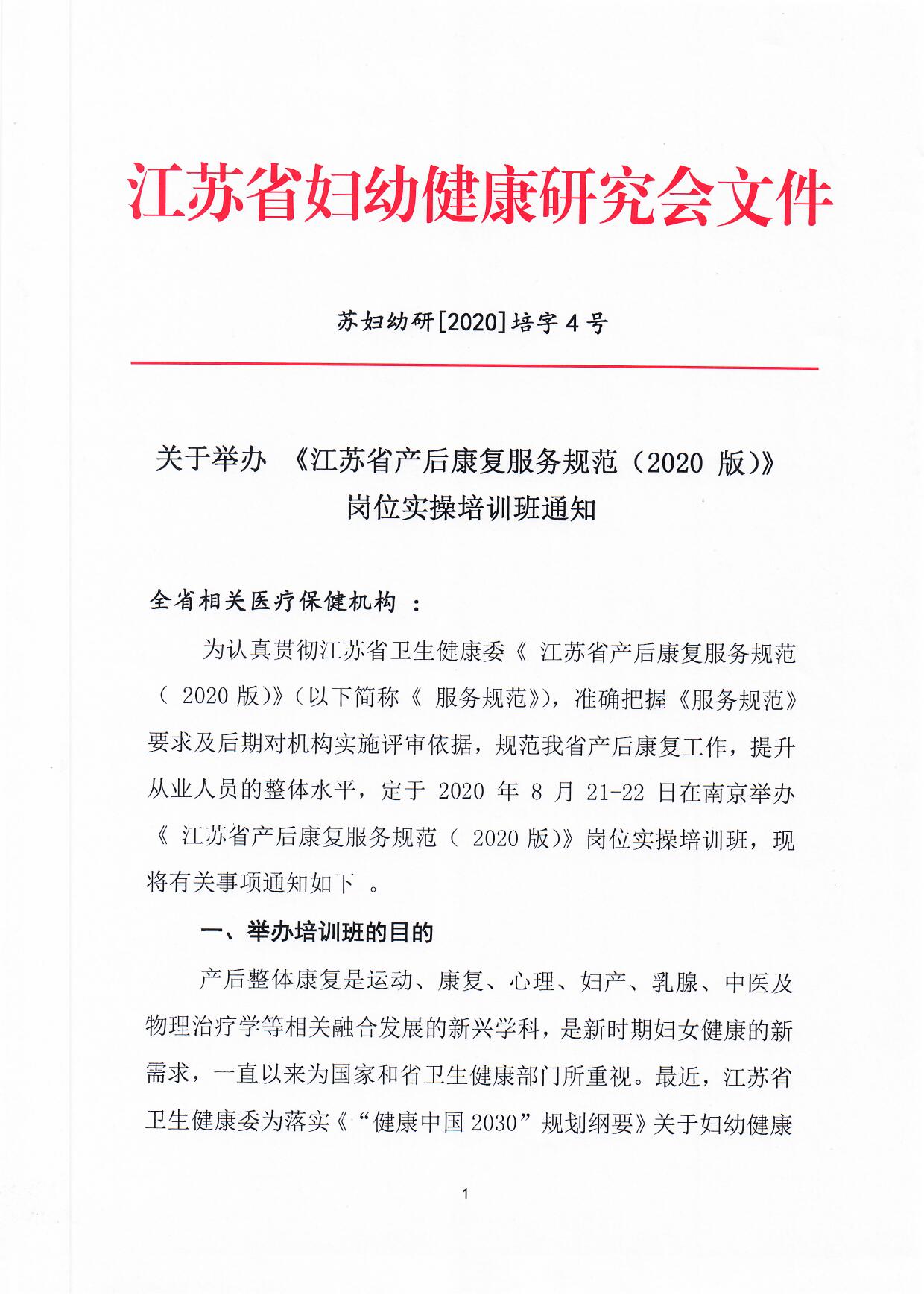 《江蘇省產(chǎn)后康復(fù)服務(wù)規(guī)范(2020版)》崗位實操培訓(xùn)班,報名啦!